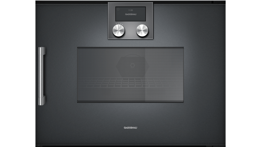 200 Series combi-microwave oven full glass door in Gaggenau Anthracite Left-hinged Controls at the top - BMP251100