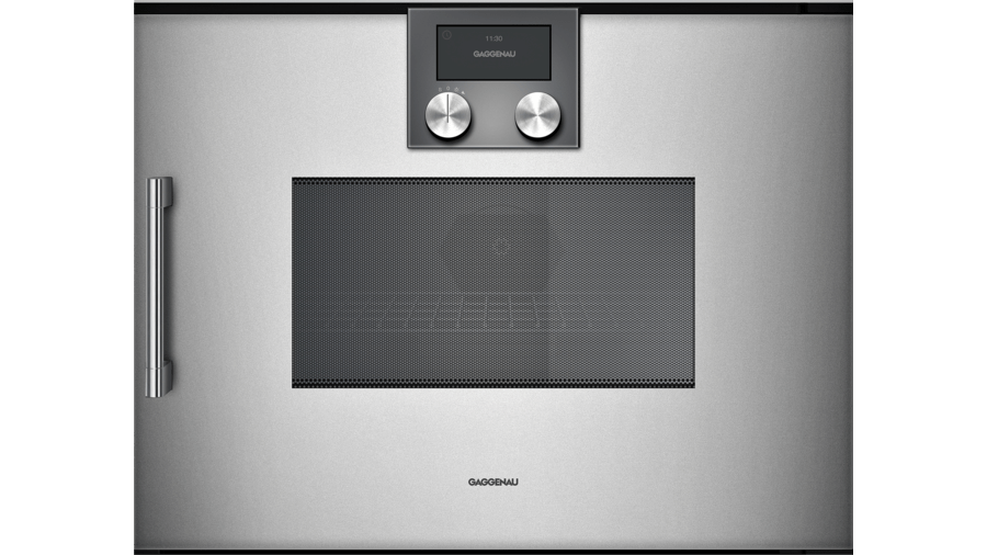 200 Series microwave oven full glass door in Gaggenau Silver Left-hinged Controls at the bottom - BMP225130