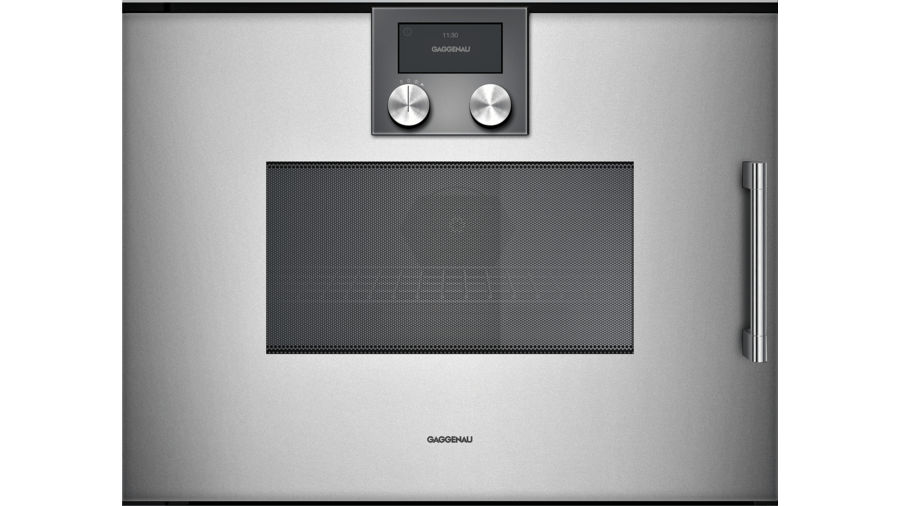 200 Series microwave oven full glass door in Gaggenau Silver Right-hinged Controls at the bottom - BMP224130