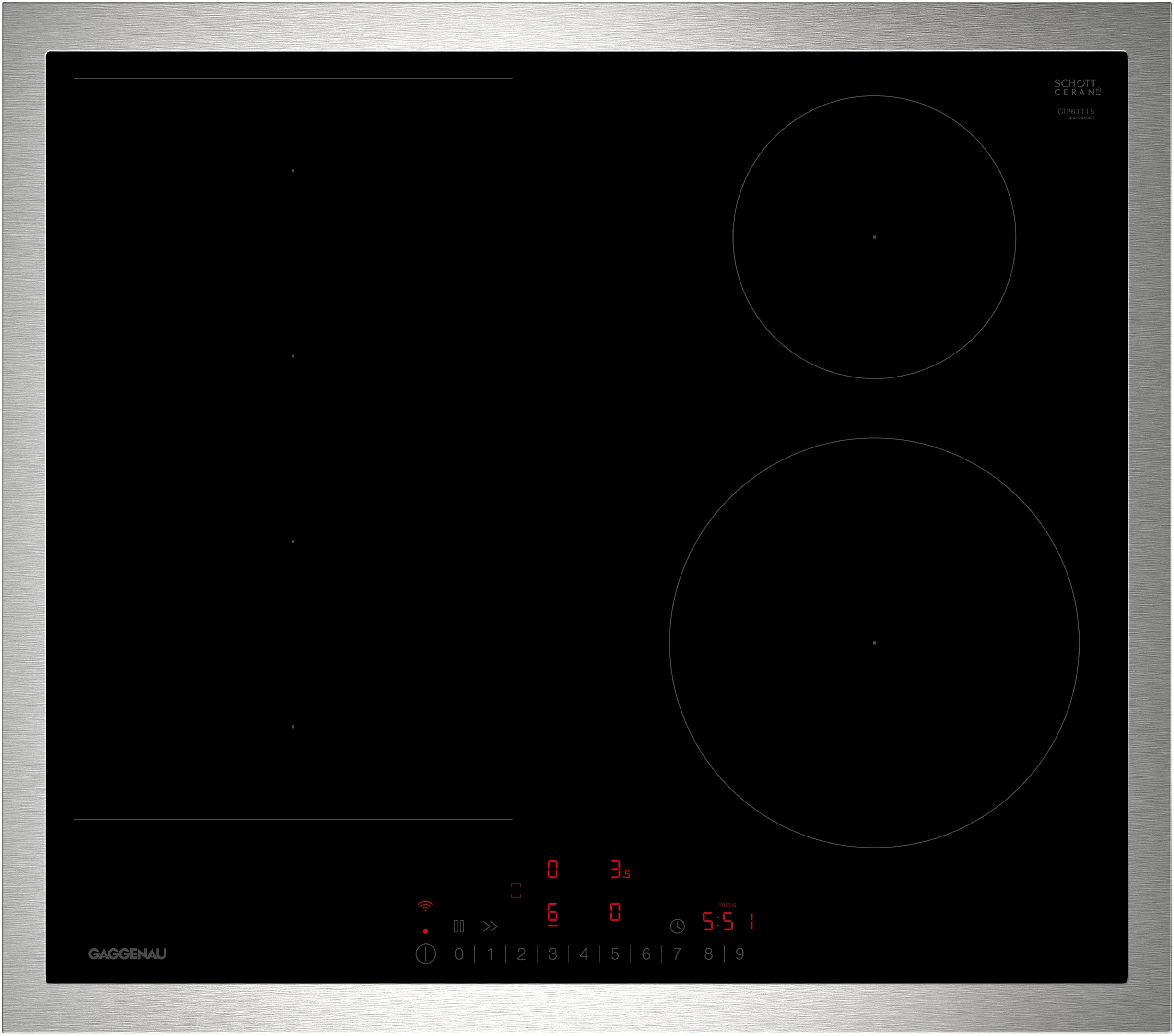 - Flexible positioning of cookware inside combined cooking areas